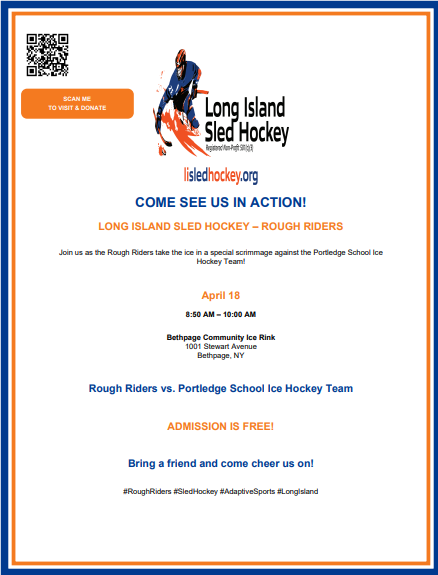 Join us on April 18th for our scrimmage against the Portledge School Ice Hockey Team! Admission is free!